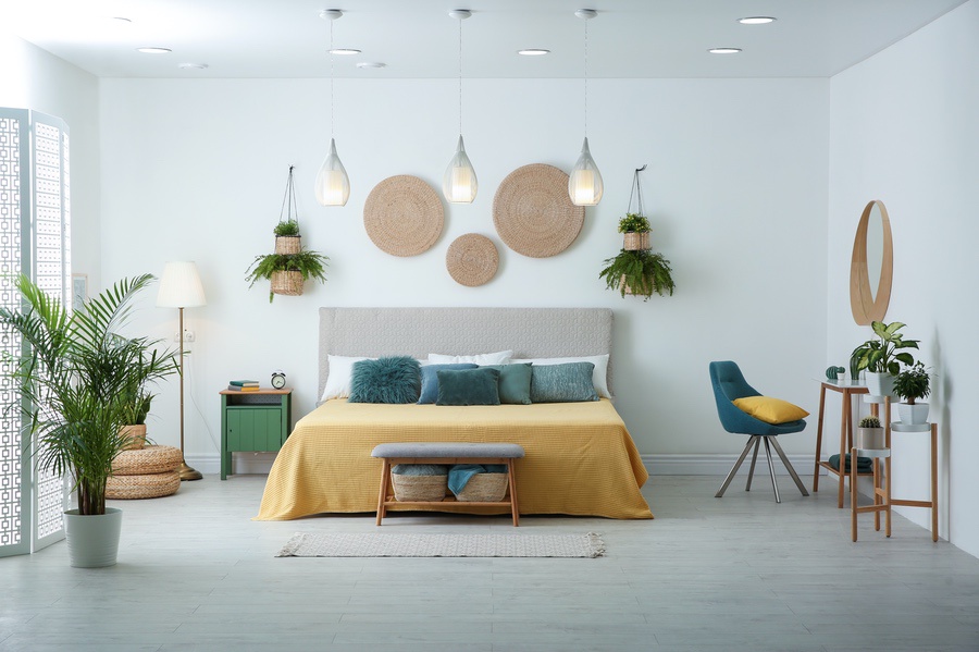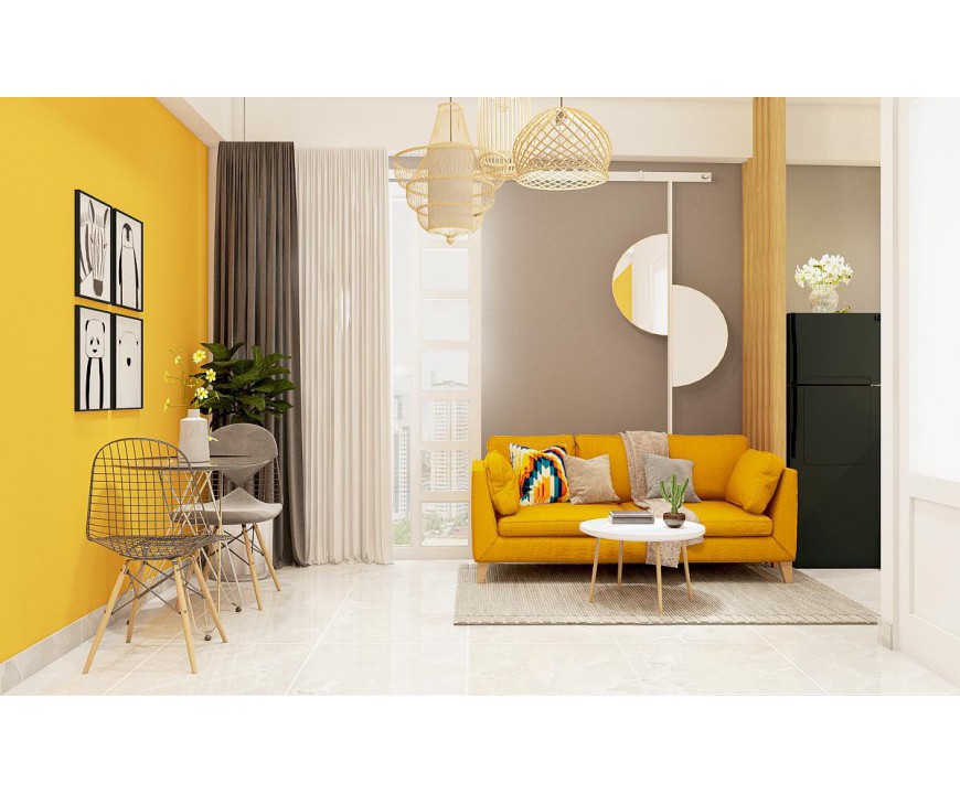 Màu vàng của nắng rực rỡ là lựa chọn không tồi cho vùng có khí hậu ôn đới quanh năm hoặc thời tiết phân định đủ 4 mùa. Nó sẽ như đem cả mùa hè, cả bầu trời vào phòng ngủ của bạn vậy.